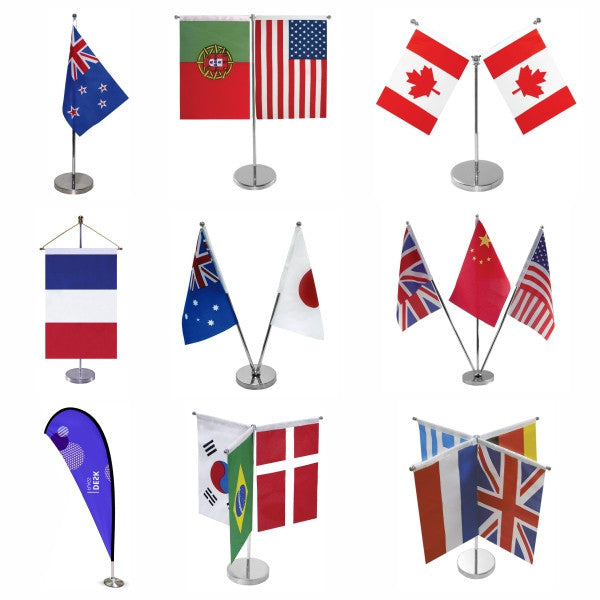 Desk Flags / Table Flags + Flag Poles (Gold or Silver)
