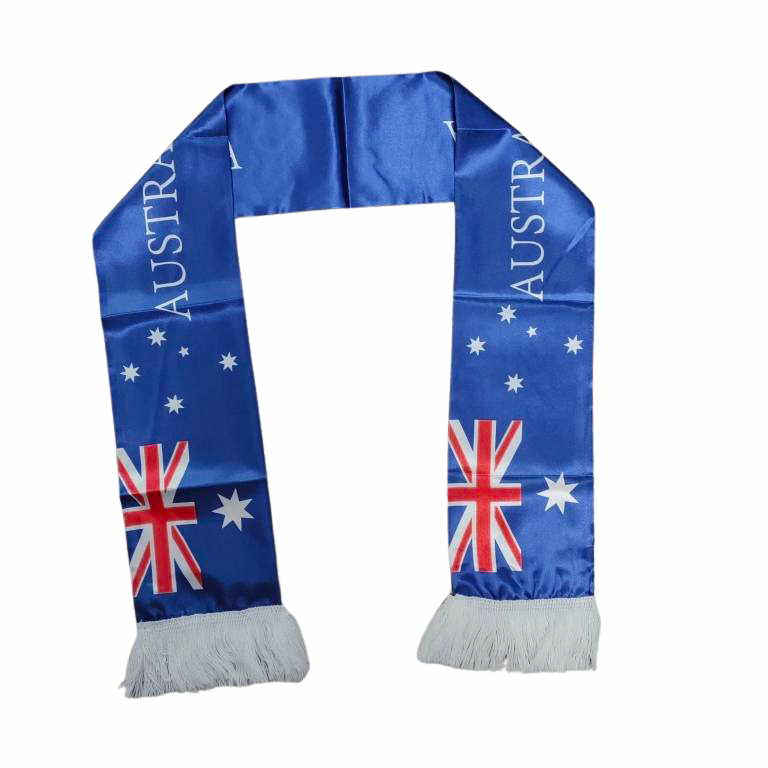 Australia Satin Scarf with Country Flag, designed to add a touch of elegance and patriotism to your wardrobe. This scarf measures 145 X 15 cm, offering a versatile accessory that can be worn in a variety of stylish ways.
