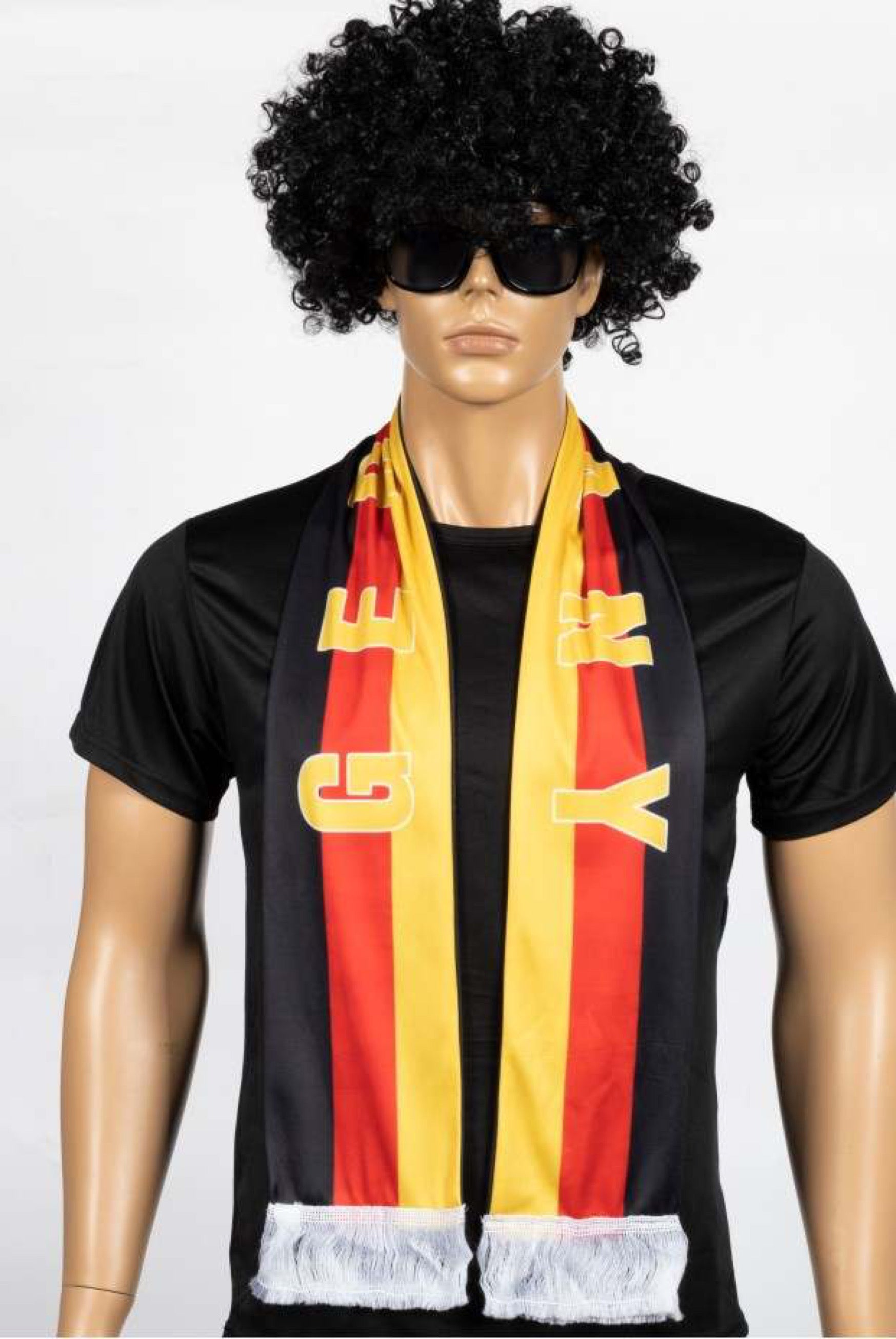 Germany Satin Scarf with Country Flag, designed to add a touch of elegance and patriotism to your wardrobe. This scarf measures 145 X 15 cm, offering a versatile accessory that can be worn in a variety of stylish ways.