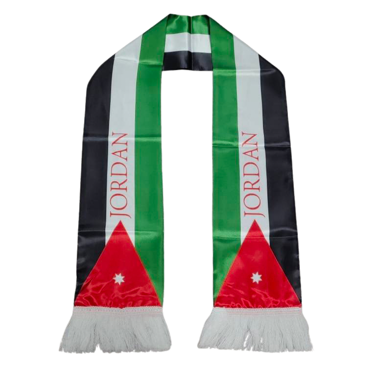 Showcase your pride with our Jordanian Satin Scarves, combining luxurious fabric with your country's flag for a stylish and meaningful accessory.