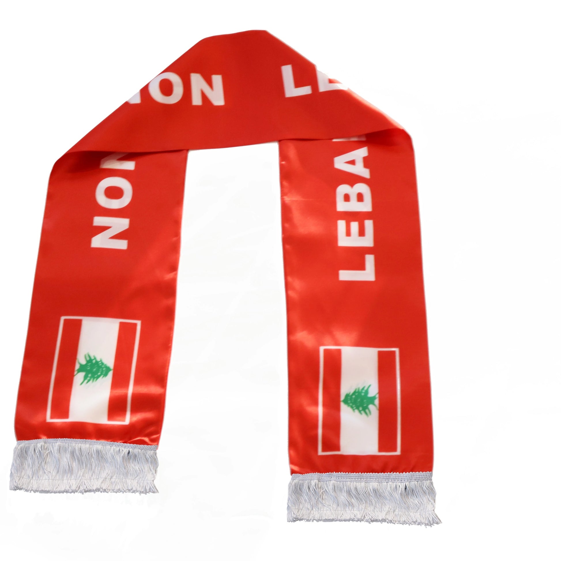 Showcase your pride with our Lebanese Satin Scarves, combining luxurious fabric with your country's flag for a stylish and meaningful accessory.