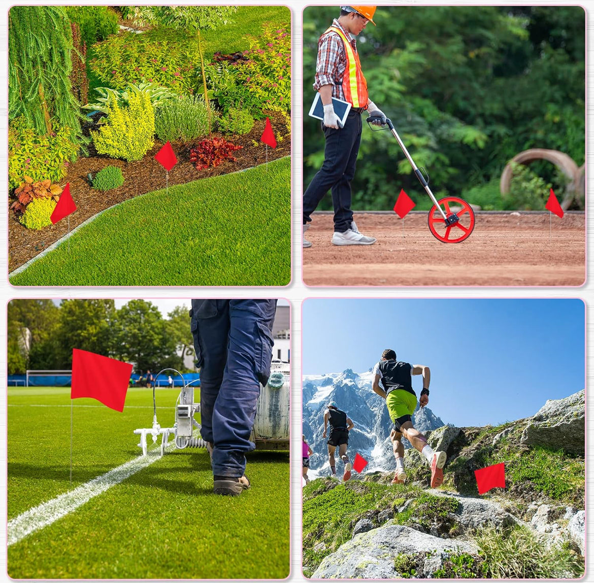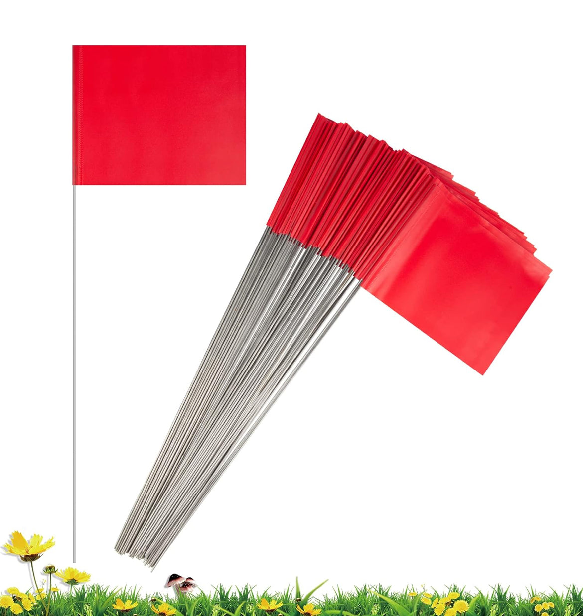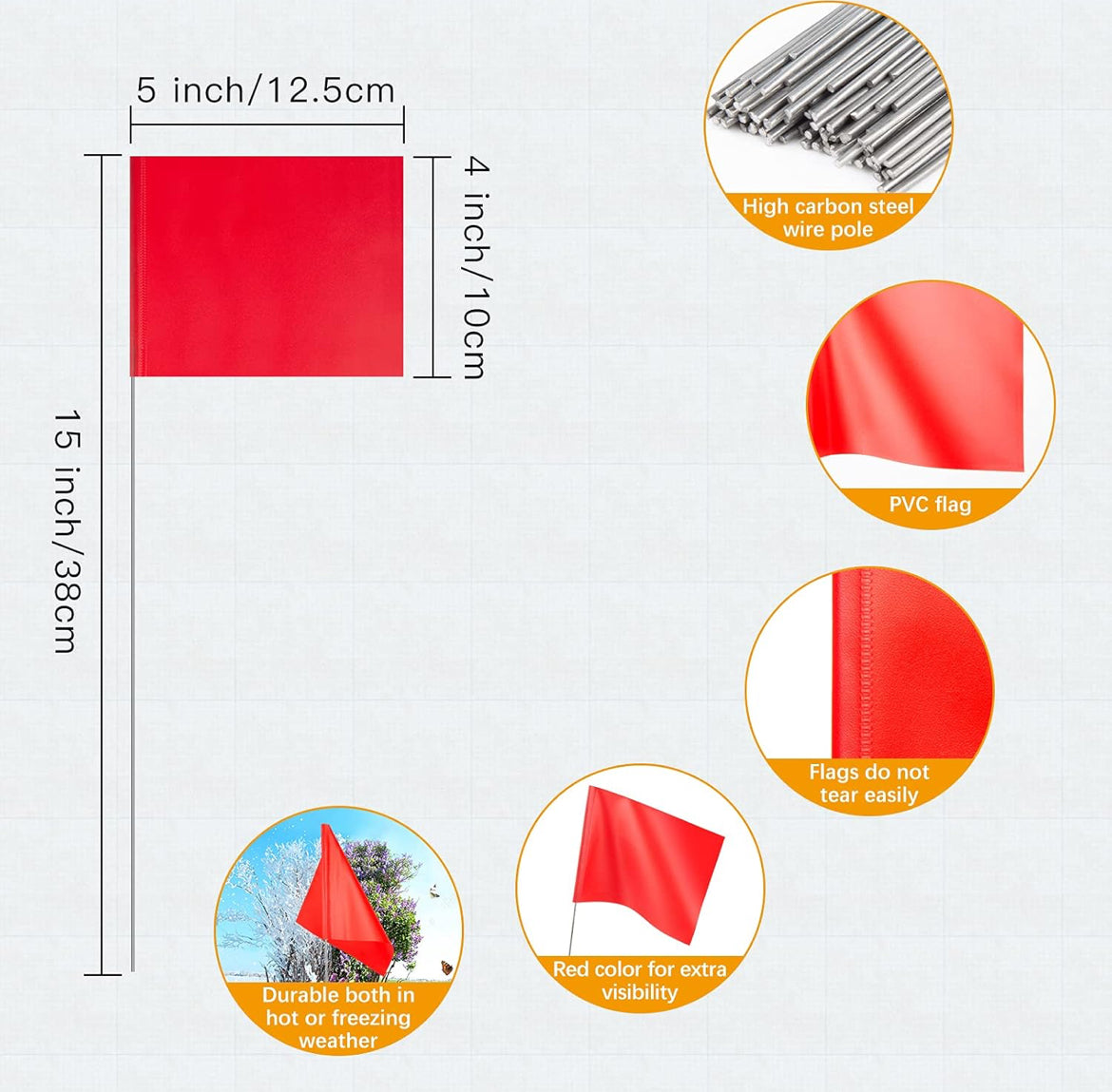Safety Flag | Marking Flag | 50 Pack | 5in x 4in (12.7 x 10.6 cm) PVC Flag with 16 Inch (40 cm) Steel Pole | Warning & Direction Flags for Measuring Wheels