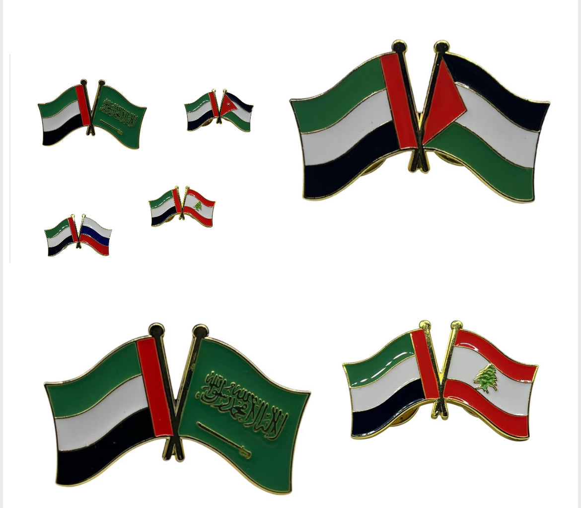 Twin Flag Pins with UAE flag and other friend nations. Friends of UAE, friends flags, 2in1 pin broche UAE lapel pin.